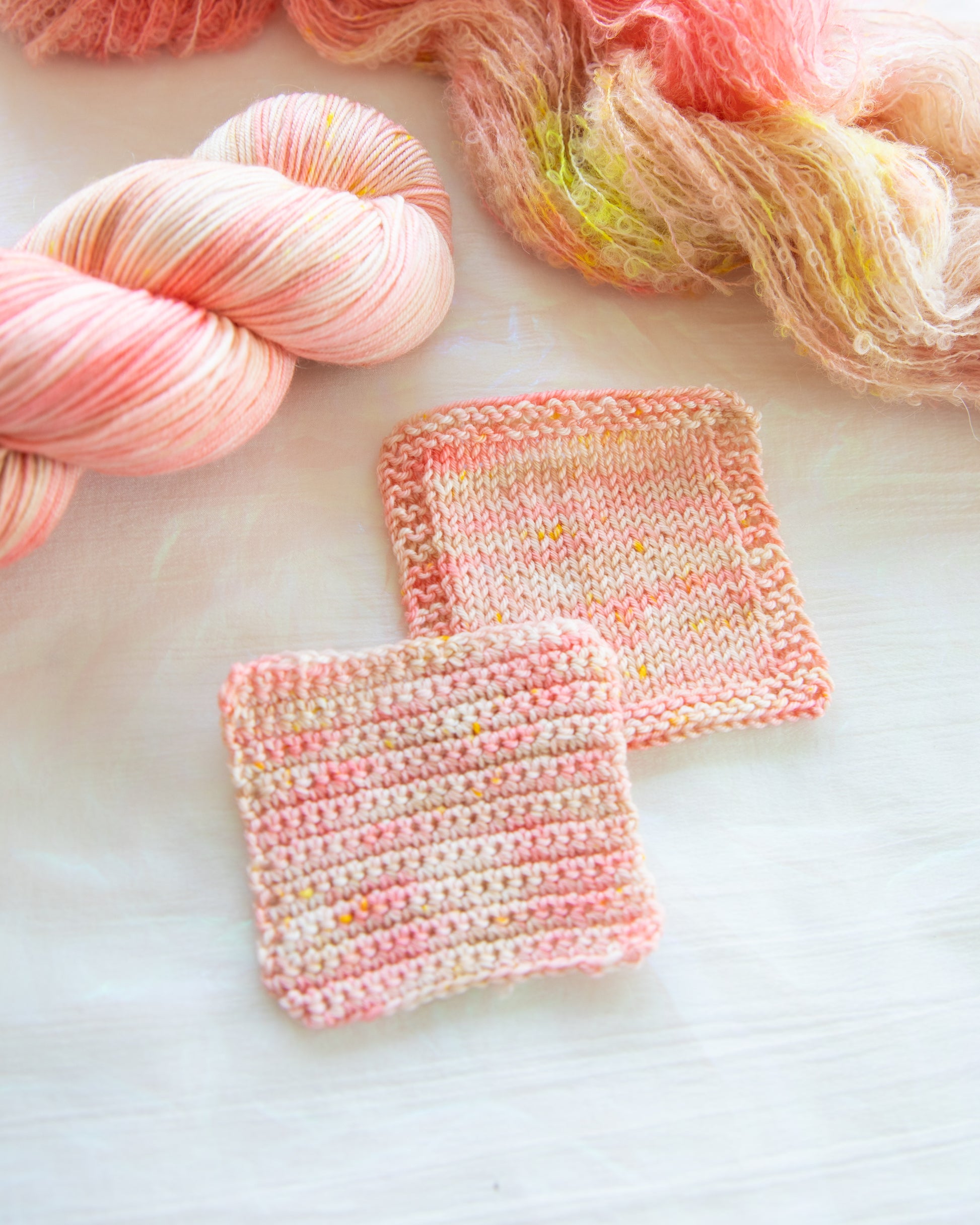 Please note that the swatch is knitted and crocheted with Dashing Fingering and provided solely as a representation of colour.