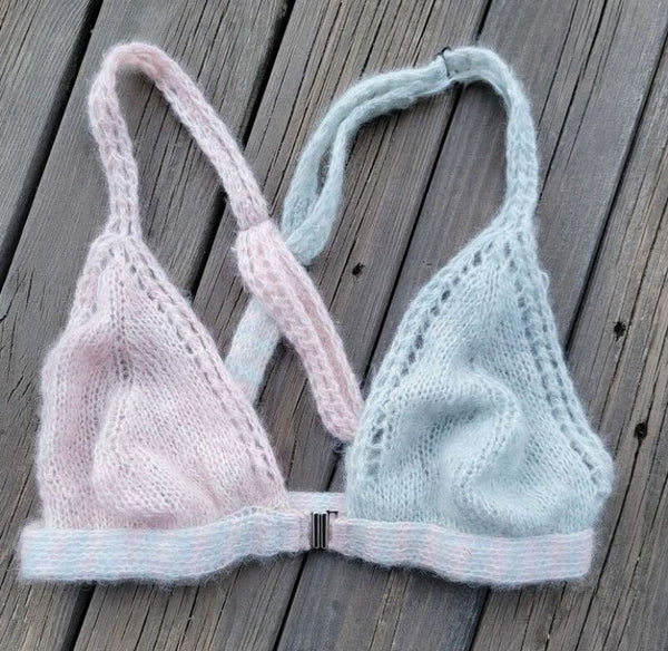 Worked with 1 strand of our lace cashmere, Veranita, or our light fingering weight yarn, Soufflé, it's as light as air and so soft on the skin you will never want to take it off.